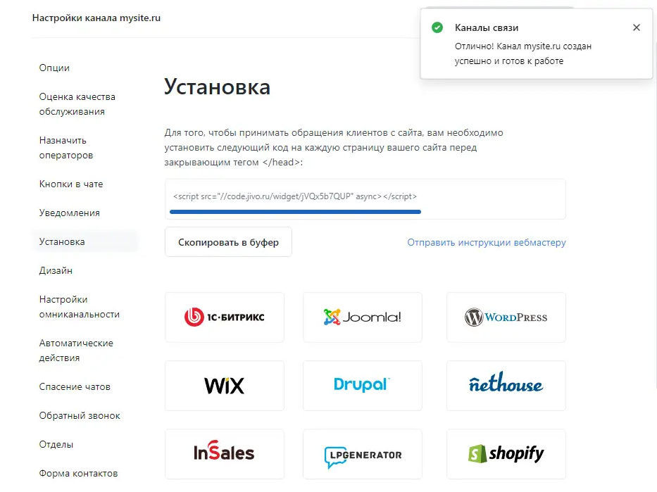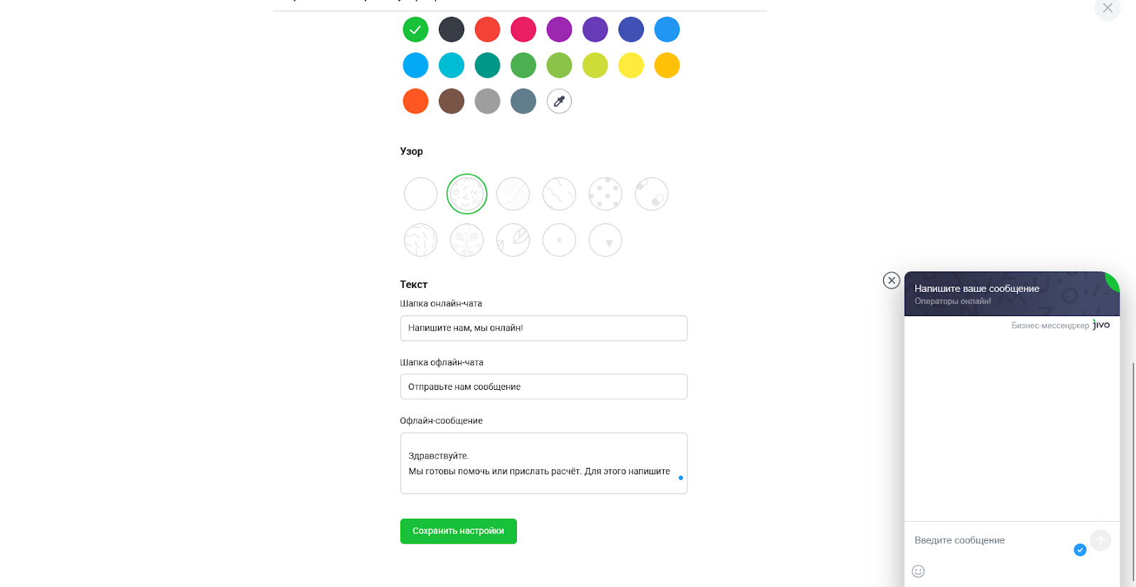 В качестве примера чата с живым оператором можно привести платформу Jivo. Она позволяет быстро установить на сайт специальный виджет для пользователей. Интеграция производится через вшивание в хэдер сайта специального скрипта и занимает несколько минут. В свою очередь оператору необходимо установить приложение сервиса, в котором он будет видеть сообщения и отвечать на них в реальном времени.