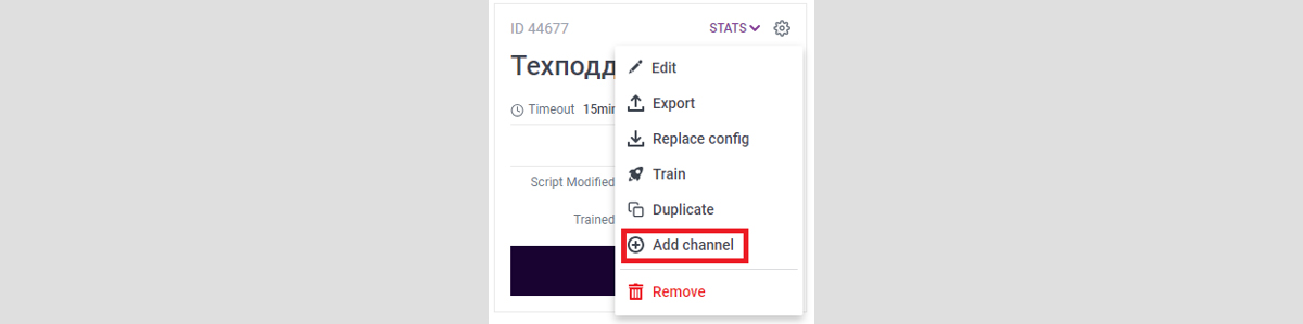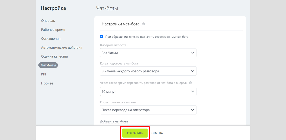 Настройте канал Агента на платформе, чтобы бот появился в настройках линии.