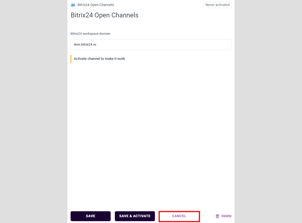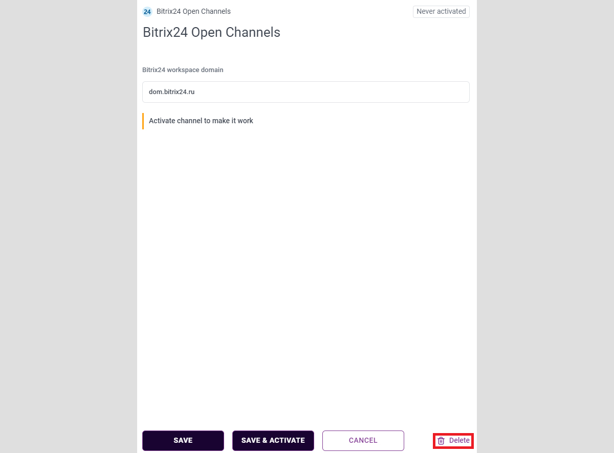 - Чтобы применить изменения и активировать Канал Проекта, нажмите кнопку SAVE & ACTIVATE