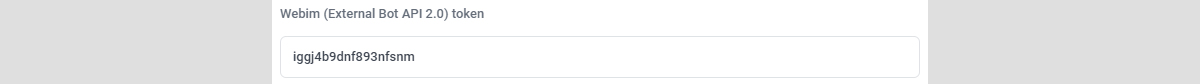 Установите полученный в настройках бота Webim токен в поле Webim (External Bot API 2.0) token