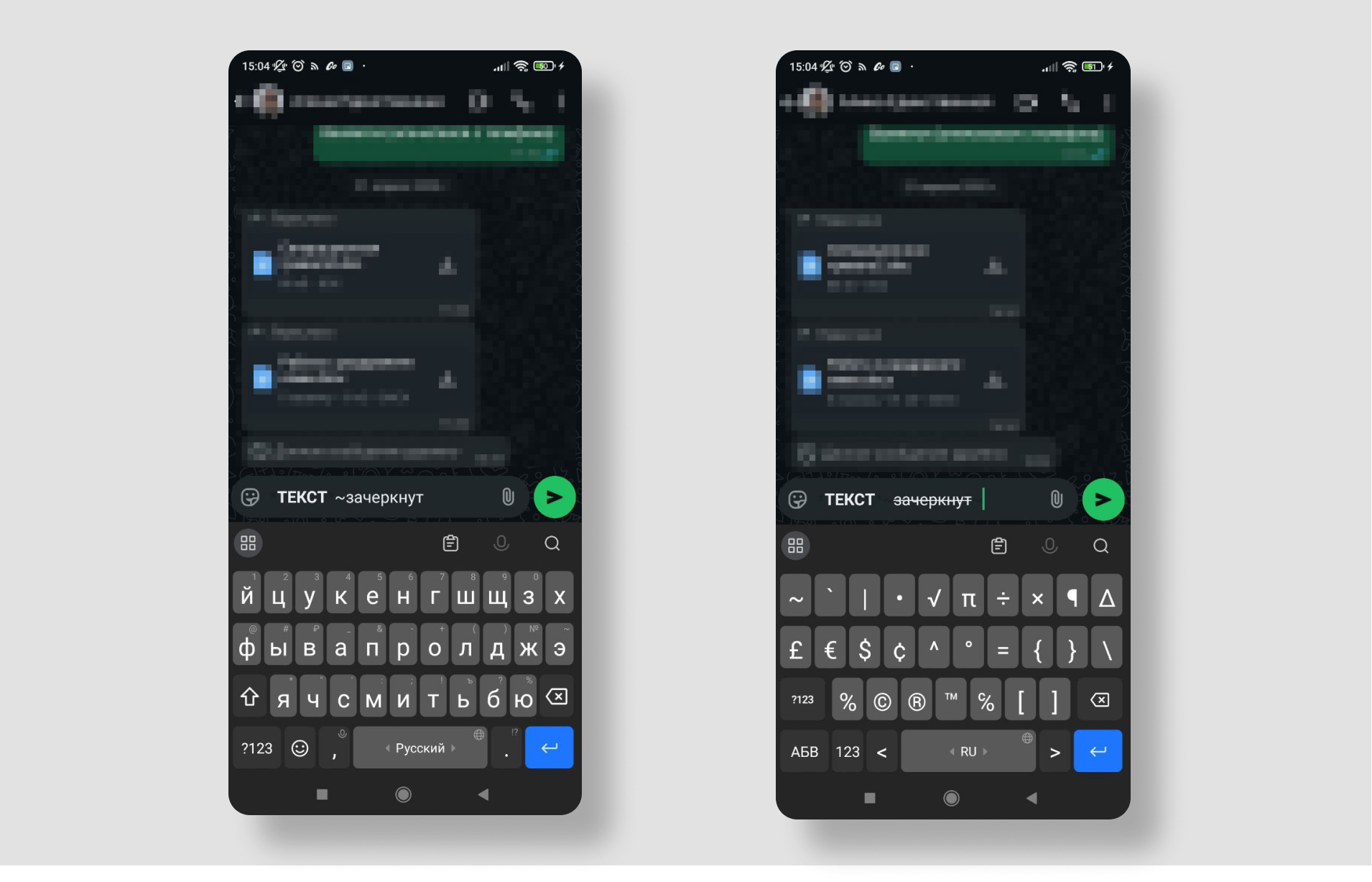 Зачёркнутый текст в WhatsApp. Этот инструмент используется не так часто, как курсив или жирный шрифт. С помощью зачёркнутого текста можно показать изменение цен во время распродажи или, к примеру, подчеркнуть ваши отличия от конкурентов.